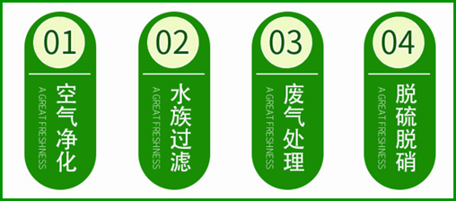 適用于大風量,低濃度工廠有機廢氣(三苯及有毒有害氣體)治理。適用于室內空氣凈化,餐飲油煙廢氣處理。空調,冰箱,復印機等除異味。并可做為催化劑載體。用于氣相吸附類活性炭,苯、甲苯、二甲苯、丙酮、油氣、CS2等有機溶劑吸附與回收.香煙過濾嘴、裝修除味、室內空氣凈化(甲醛,苯等有害氣體的去除),工業用氣的凈化(如CO2,N2等)、石化行業生產、天然氣凈化、脫硫、除臭、廢水的治理.生化、油漆工業、地下場所、皮革工廠、動物飼養場所的空氣凈化、脫臭.煙道氣的臭氣吸附,硫化物吸附,汞蒸汽的去除、降低戴奧辛的生成。
